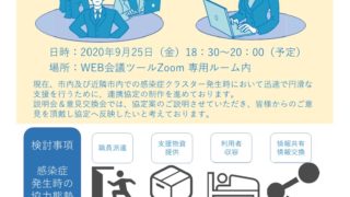 イベントのご案内 千歳市「感染症発生時における連携協定」に関するWeb説明・意見交換会開催のお知らせ ホームページをご覧の皆様いつも大変お世話になっております。日頃より、新型コロナウイルス感染症についての、アンケート調査や訪問支援活動へのご理解・ご協力を頂き誠にありがとうございます。当会ではアンケート調査や訪問支援活動からの皆様からの貴重な... 2020.09.18 イベントのご案内