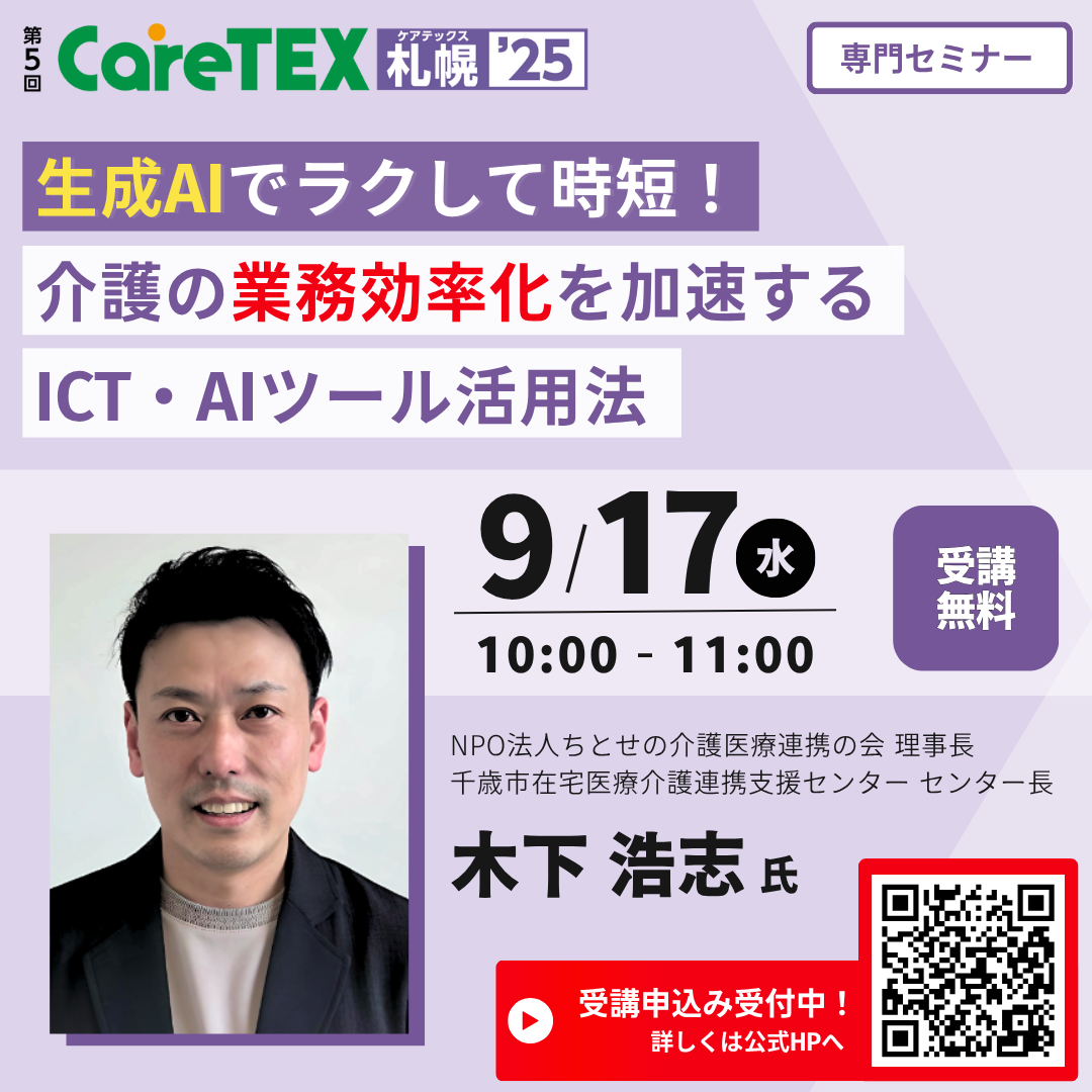 この度、当会 理事長である木下浩志が登壇し、生成AIを活用した介護業務効率化の秘訣についてお話しします!