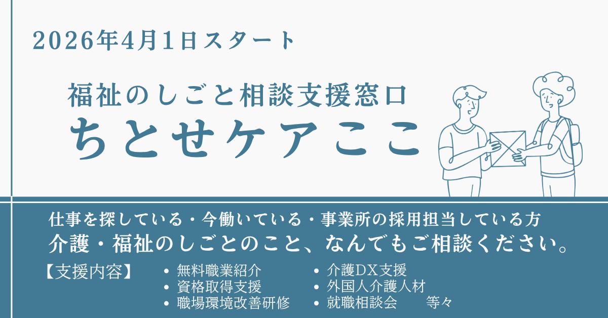 4月1日より、「福祉のしごと相談支援窓口 ちとせケアここ」が開設しました。